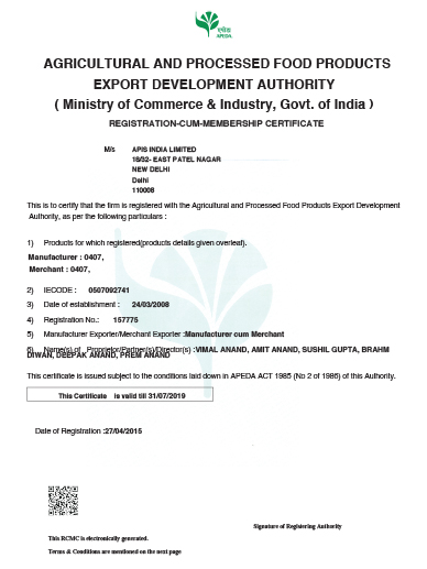 We are one of the few certified companies dealing in honey, from India. We have been twice awarded the prestigious APEDA Export Award by Ministry of Commerce, Government of India, for our achievement in exports of honey.